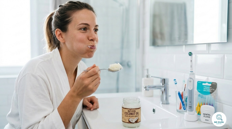 En los últimos años se ha hecho viral en redes sociales una práctica llamada oil pulling, que consiste en enjuagarse la boca con aceite vegetal (habitualmente aceite de coco) durante varios minutos y escupirlo después.