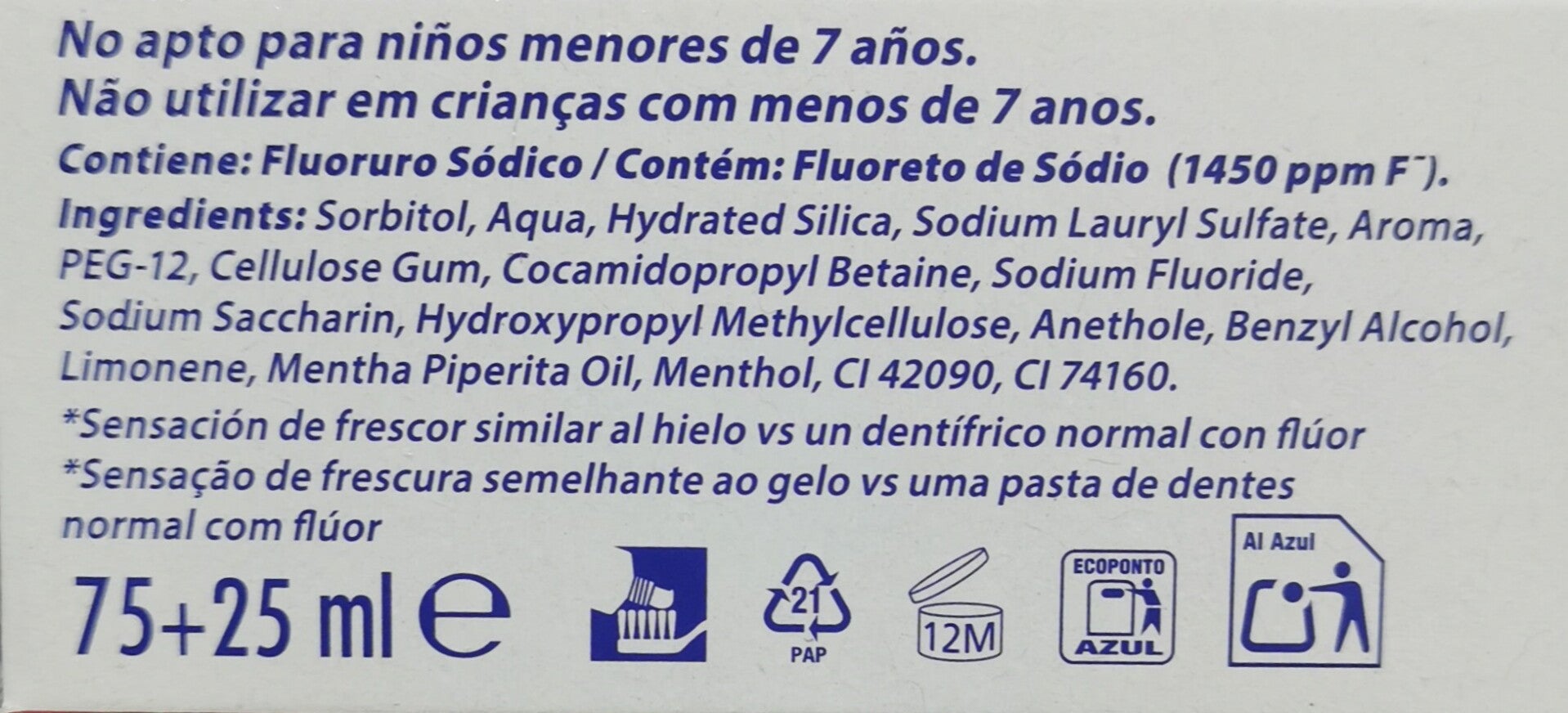 Tipo: anticaries + frescor intenso