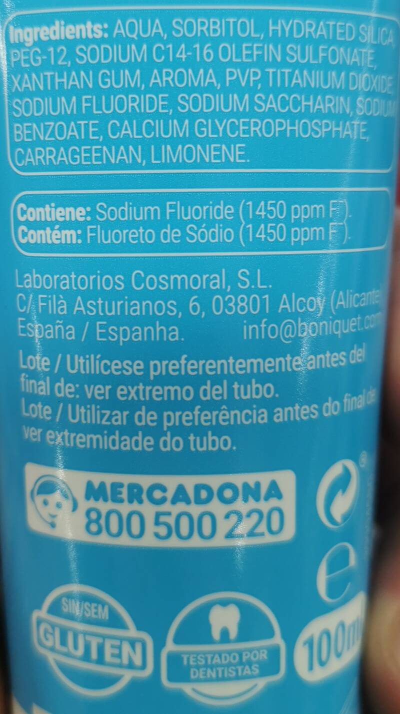 Tipo: anticaries (protección del esmalte) + frescor